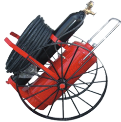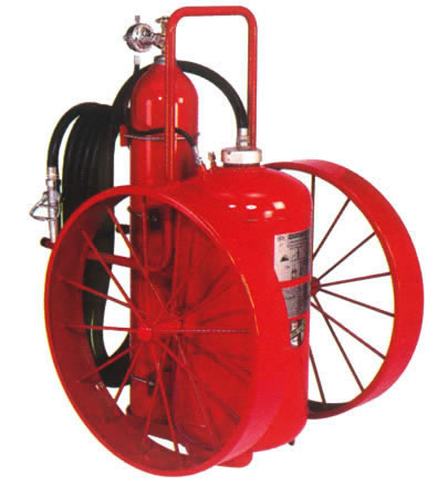 Las Unidades Móviles industriales sobre ruedas con propulsión externa de nitrógeno son cargados con polvo químico seco Normado a base de fosfato monoamónico con gran efectividad en fuegos A-B-C; tienen una alta capacidad de extinción de fuego, estos son indispensables en fábricas con procesos de alto riesgo, almacenes de productos inflamables, casetas de pintura, etcétera.