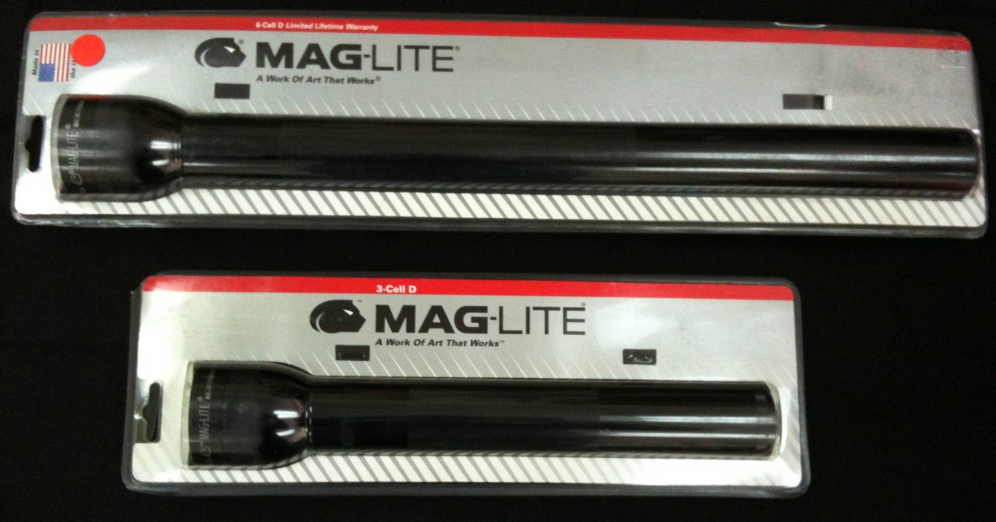 Linternas de alta resistencia marca Mag-lite con luz de punto.