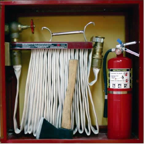 METAL HOUSING, ANGLE VALVE, BRASS NIPPLE, HOSE HOLDER RACK, FIRE HOSE STRETCH WITH BRASS FITTINGS, BRONZE PYTHON, DRY chemical powder extinguisher, GR 1000 AXE AND CHROME SPANNER WRENCH