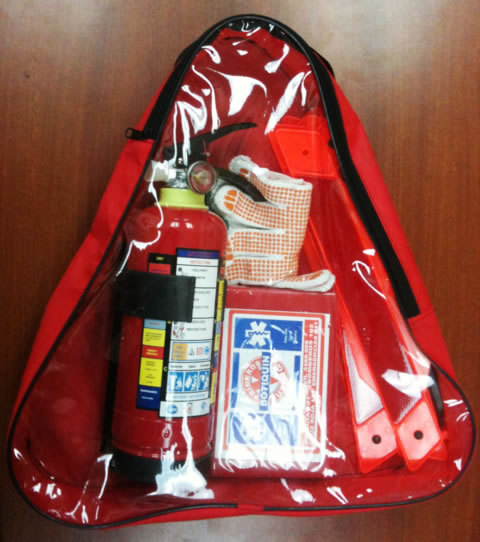 Car Kit, consisting of: 5 pounds extinguisher dry chemical powder, triangle, glove, and first aid.