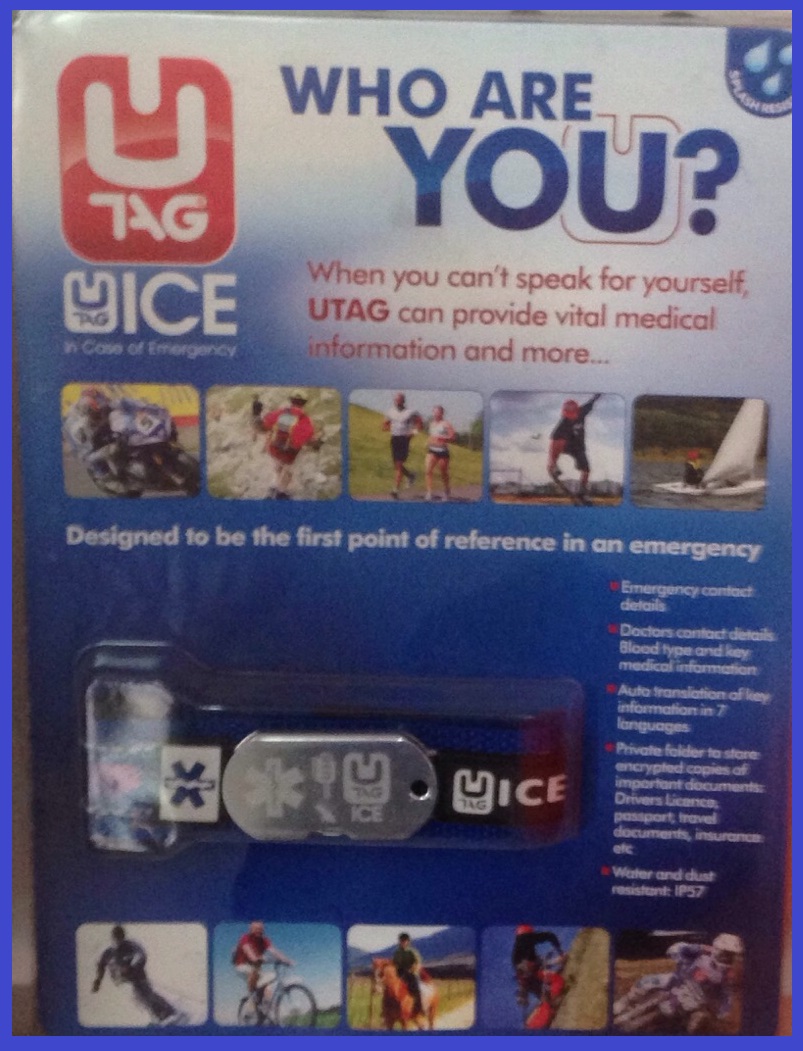 USB information UTAG model keeping vital personal information. Designed to be the first point of reference in an emergency. The standard band is 24cm (9.4 inches) long and the small is 21cm (8.3 inches) long. Both bands have a rubber stopper at the end which is 4cm (1.3inches) long which has to fold back so you need to take this into consideration so the actual length available to go around your wrist is 20cm (7.9 inches) and 17cm (6.7 inches).